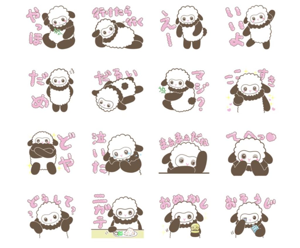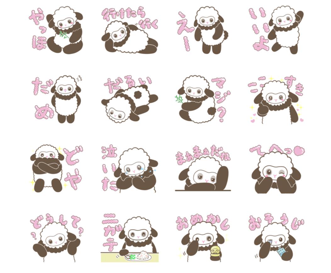 LINEスタンプ パンダシープスタンプをつくったよ! やった~!ぼくのスタンプができたよ! パンダシープくんらしいお茶目なスタンプだね! 夏子のスタンプまだ~? これから作るよ! 「パンダシープ vol.1」へ